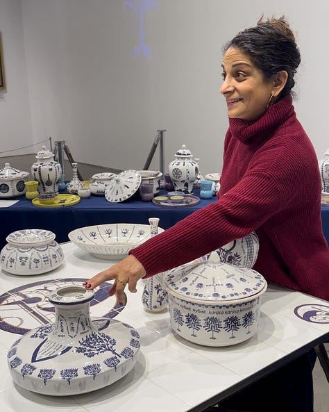 Sarah is a multimedia maker, who works across paper, books, prints, photography, porcelain and films — and makes art about about food, culture, women and migrants. This current exhibition uses drawings, ceramics and film to excavate stories and histories that prevailed in the African, Arab and Asian worlds long before the West became dominant.